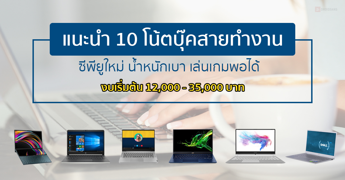 แนะนำ 10 โน้ตบุ๊คสายทำงาน ซีพียูรุ่นใหม่ น้ำหนักเบา เล่นเกมพอได้ งบเริ่มต้น 12,000 – 35,000 บาท