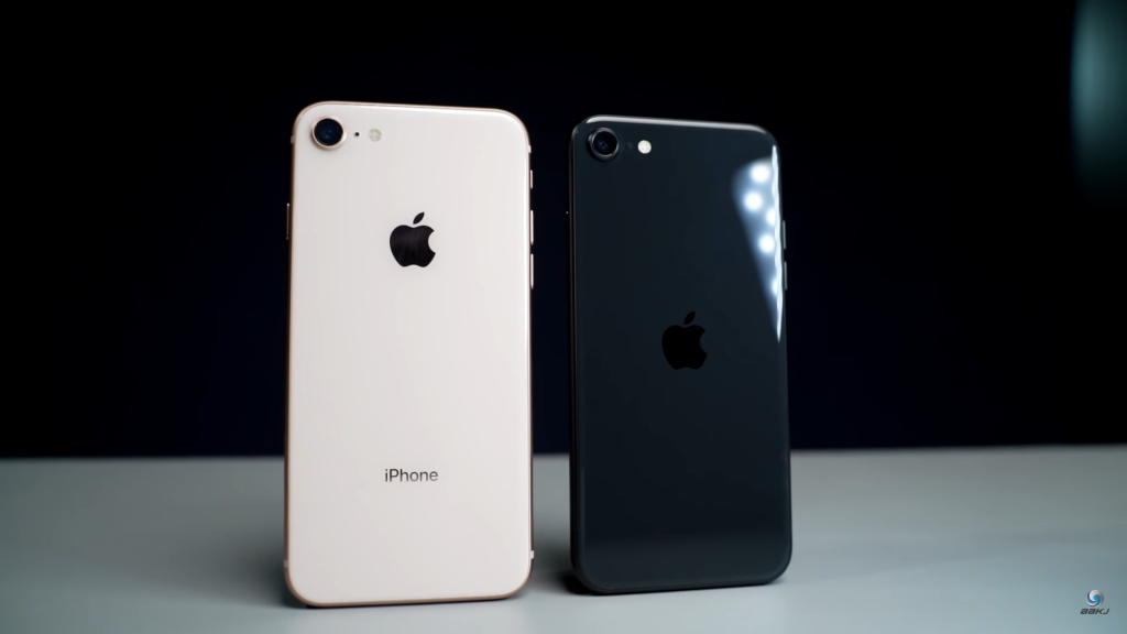 เริ่มจากดีไซน์ภายนอก หากวาง iPhone SE (2020) และ iPhone 8 เทียบกันแล้ว ก็แทบจะแยกไม่ออกเลยล่ะว่ารุ่นไหนเป็นรุ่นไหน ทว่า..หากพลิกที่ด้านหลัง ก็จะสังเกตเห็นว่าโลโก้ Apple บน iPhone SE (2020) จะอยู่ต่ำกว่า iPhone 8 นิดนึง โดยจะขยับมาอยู่บริเวณกลางตัวเครื่องแทน และคำว่า iPhone ก็ถูกตัดออกไป เหมือนกับรุ่นพี่ iPhone 11 Series นั่นเอง