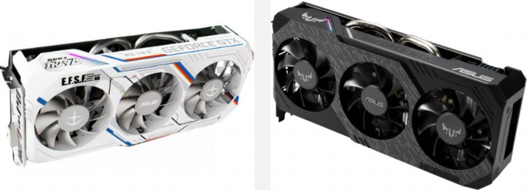 นอกจากนี้ยังมีการ์ดจอลายกันดั้มที่คาดว่าน่าจะเป็นโมเดลเดียวกันกับ TUF X3 Seires รุ่น GTX 1660Ti คือมีใบพัดลม 3 ใบ และการจัดวางตำแหน่งบอร์ดคล้ายๆ กัน โดยจะมีพอร์ต DVI, HDMI และ DisplayPort ตามมาตรฐานปกติ