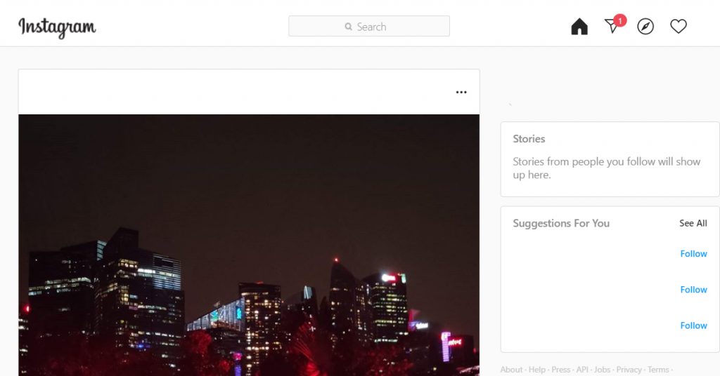 เบื้องต้น การเข้าใช้งานฟีเจอร์ Direct Message บนหน้าเว็บ Instagram นั้น ไม่มีอะไรซับซ้อน ปุ่มเข้าใช้งานจะอยู่ข้างๆ ปุ่ม Home บริเวณมุมขวาบน หากมีคนส่งข้อความมาหา ก็จะมีตัวเลขขึ้นแจ้งเตือนตามรูปด้านล่างเลยครับ