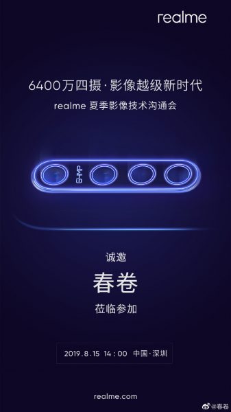 หลังจากปล่อยทีเซอร์ภาพตัวอย่างที่ถ่ายด้วยกล้องความละเอียด 64 Mp ไปเมื่อไม่นานที่ผ่านมา ล่าสุด Realme ประกาศพร้อมเปิดตัวว่าที่มือถือเรือธงรุ่นใหม่ของค่ายที่จะมาพร้อมกล้องหลัง 4 ตัว โดยในนั้นจะมีความละเอียดสูงสุดถึง 64 MP ซึ่งกำหนดการเปิดตัวจะมีขึ้นในวันที่ 8 สิงหาคม 2019 นี้ที่กรุงนิวเดลลี ประเทศอินเดีย