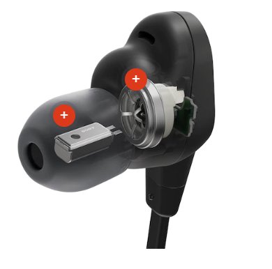 ระบบ Noise Canceling หรือระบบตัดเสียงรบกวนใน WI-1000XM2 นั้นจะเป็นแบบ Dual Active Noise Canceling ครับ (โซนี่เรียกของตัวเองว่า Dual Noise Sensor Technology) โดยรับเสียงภายนอกผ่านไมค์ในภาพ (เรียกว่า Feed-forward) แล้วข้างในหูฟังจะมีไมค์อีกตัวนึง (เรียกว่า Feed-back) คอยฟังว่าหลังจากตัดเสียงรบกวนไปชั้นหนึ่งแล้วยังเหลือเสียงไหนที่ควรตัดทิ้งอีกบ้างแล้วเอาไปประมวลผลซ้ำอีกทีหนึ่ง ทำให้จัดการตัดเสียงได้ดีขึ้นกว่าเดิม ผมเข้าใจว่าหูฟังหลายๆ แบรนด์ที่ทำ Noise Canceling กันก็พยายามมาทำระบบนี้กันแล้ว