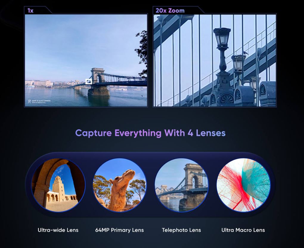 ข้อมูลบนเว็บไซต์ของ realme ได้เปิดเผยถึงข้อมูลบางส่วนของ realme 6 series ว่าจะมีกล้องหลังทั้งหมด 4 ตัว มาครบทุกระยะ ไม่ว่าจะเป็น Wide, Ultra Wide, Telephoto และ Macro ซึ่งตัวเซนเซอร์หลักมีความละเอียดสูงถึง 64 ล้านพิกเซล แถมมีประสิทธิภาพการซูมได้ไกลถึง 20x