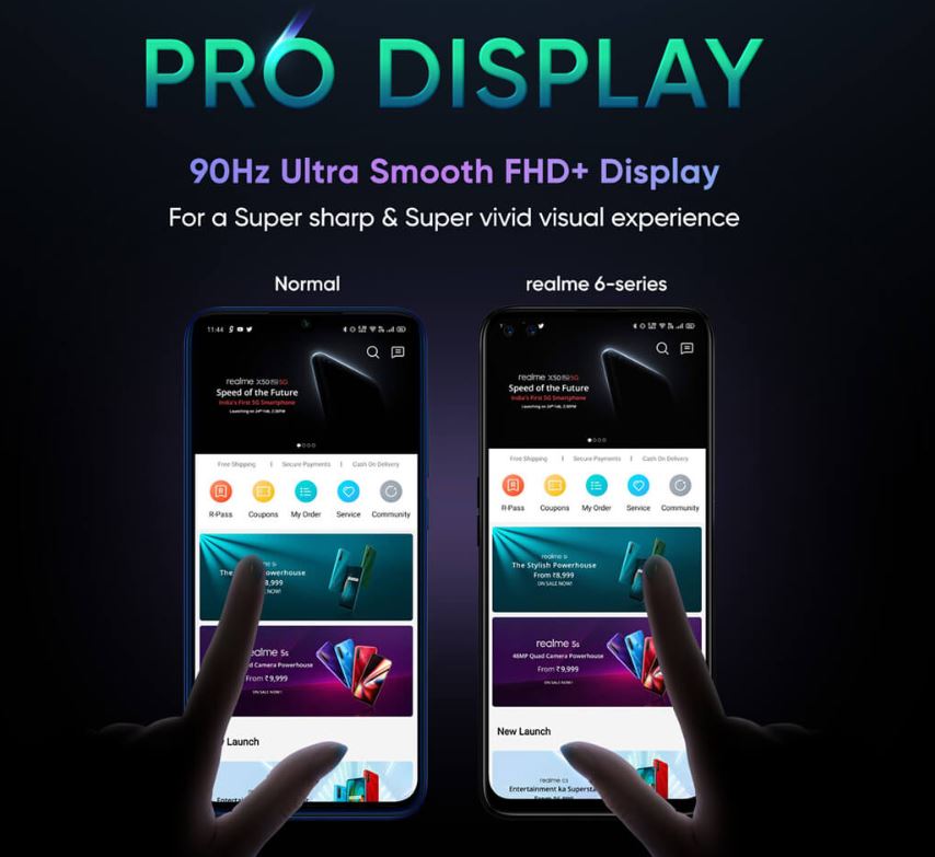 นอกจากนี้ หน้าจอของทั้ง realme 6 และ realme 6 Pro จะเลือกใช้เป็นจอที่มีค่ารีเฟรชเรท 90 Hz ความละเอียด Full HD+ ทำให้ภาพที่ได้นั้นคมชัด และมีความลื่นไหล สบายตา
