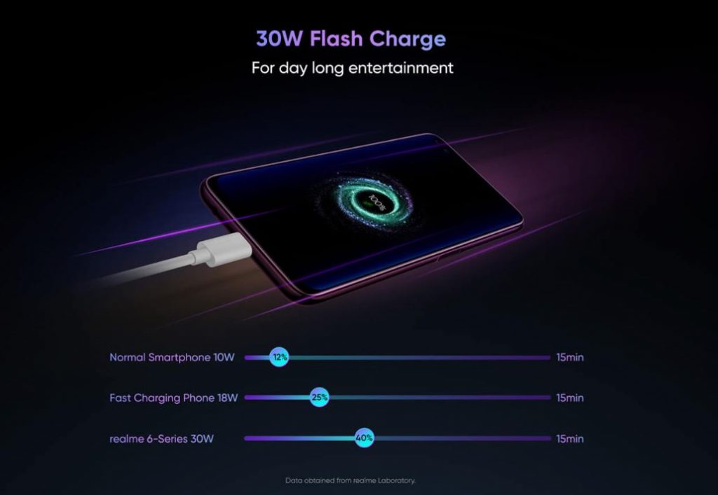 realme 6 series มาพร้อมกับระบบชาร์จไว 30W ใช้เวลาชาร์จเพียง 15 นาที ก็ได้แบตเตอรี่มาใช้แล้ว 40%