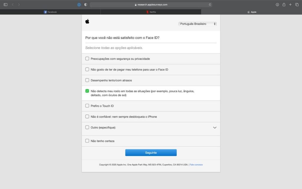 น่าเสียดายที่ Apple ไม่ได้ถามผู้ใช้งานโดยตรงเกี่ยวกับปัญหาที่ Face ID ไม่สแกนใบหน้าผู้ใช้งานเวลาใส่หน้ากากอนามัย แต่ดูเหมือนว่าจะได้ถามมาแล้วเป็นนัยๆในตัวเลือกที่ Face ID ตรวจจับใบหน้าไม่ได้ในบางสถานการณ์ นอกจากนี้ Apple ยังได้สอบถามเพิ่มเติมเกี่ยวกับการใช้งานอุปกรณ์ที่แถมมาในกล่องอย่างสติ๊กเกอร์โลโก้แอปเปิ้ล, เข็มจิ้มถาดรองซิมการ์ด และสาย USB-C Lightning